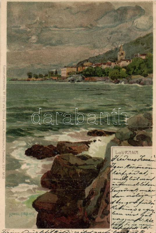 Leírás: Lovran, Lovrana, Künstlerpostkarte No. 1772. von Ottmar Zieher, litho s: Raoul Frank