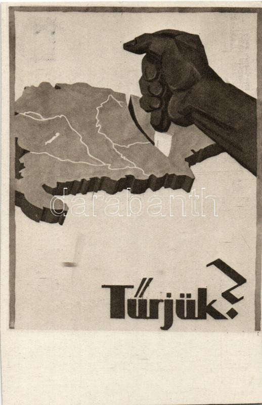 'Tűrjük?' / 'Shall we tolerate it?' Hungarian irre... https://www.darabanth.com/hu/202-Gyorsarveres/202.0/Kepeslapok/Irredenta~600050/Turjuk-Shall-we-tolerate-it-Hungarian-irredenta-pinx-Rausch-Erno~II803925