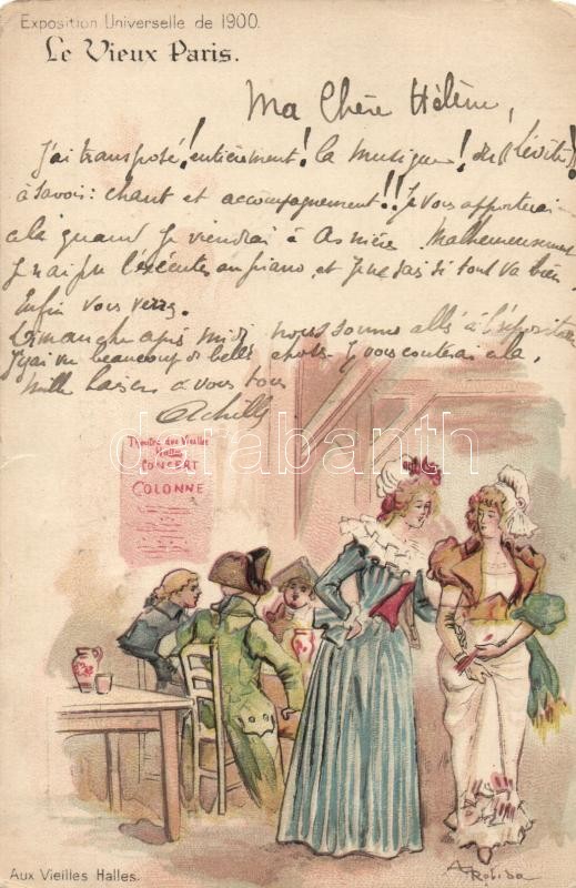 Leírás: 3 db régi, litho képeslap, ebből kettő sérült: Le Vieux Paris, Expostion Universelle de 1900 / The old Paris, Expo 1900 - 3 litho postcards, 2 damaged
