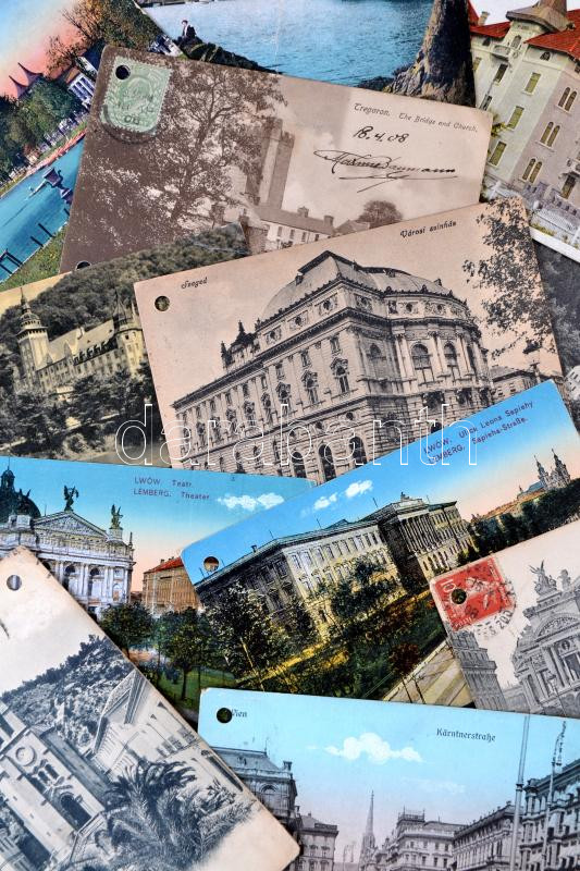 95 db főleg régi, külföldi és néhány magyar városképes lap, kevés motívum; vegyes minőség / 95 mainly old worldwide postcards, some motive cards; mixed quality