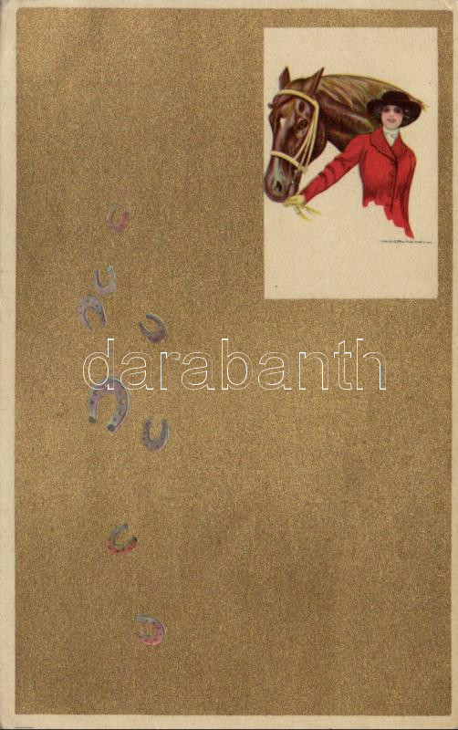 Leírás: Female jockey, Italian art postcard s: Nanni