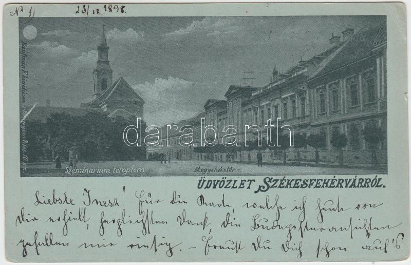 1898 Székesfehérvár, Szeminárium templom, Megyeháztér (small tear) https://www.darabanth.com/hu/202-Gyorsarveres/202.0/Kepeslapok/Magyarorszag~400005/1898-Szekesfehervar-Szeminarium-templom-Megyehazter-small-tear--3Cbr3E~II657291