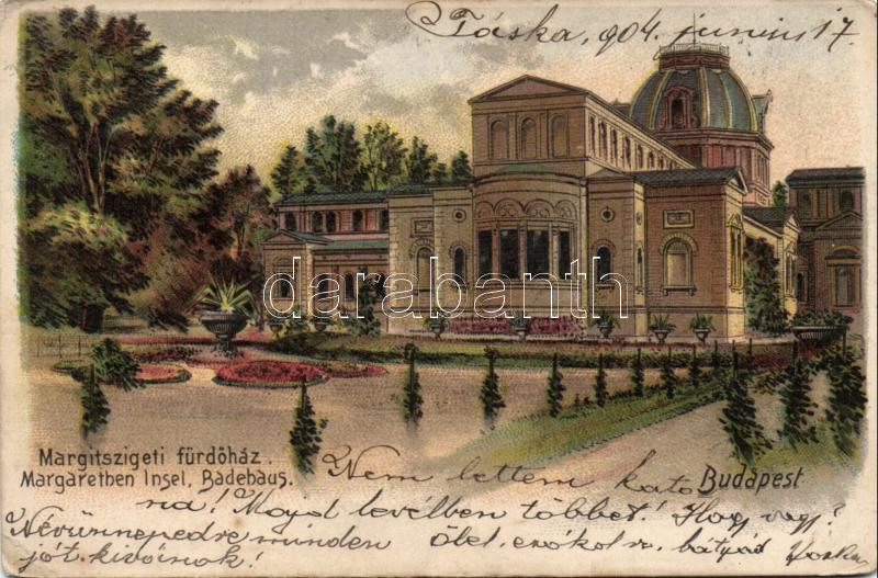 Budapest XIII. Margitsziget, fürdőház, litho (EB)
