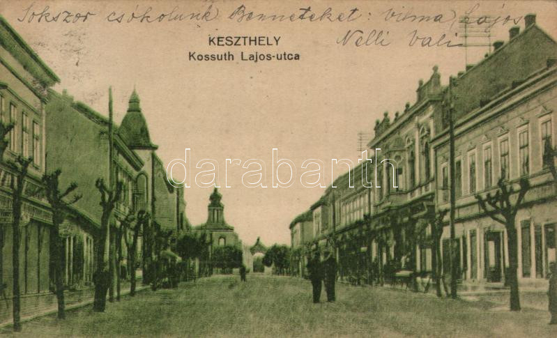 Keszthely Kossuth utca; Gál testvérek kiadása https://www.darabanth.com/hu/202-Gyorsarveres/202.0/Kepeslapok/Magyarorszag~400005/Keszthely-Kossuth-utca-Gal-testverek-kiadasa~II800146