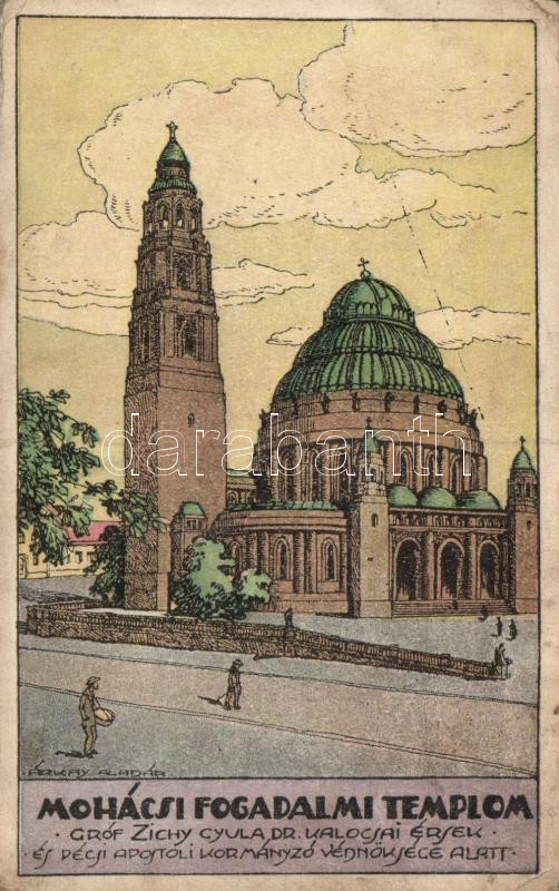 Leírás: Mohács Fogadalmi templom s: Árkay Aladár (fa)