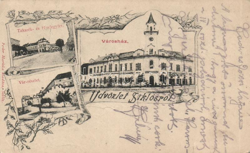 Leírás: Siklós városháza, vár, takarék- és hitelegylet (b)