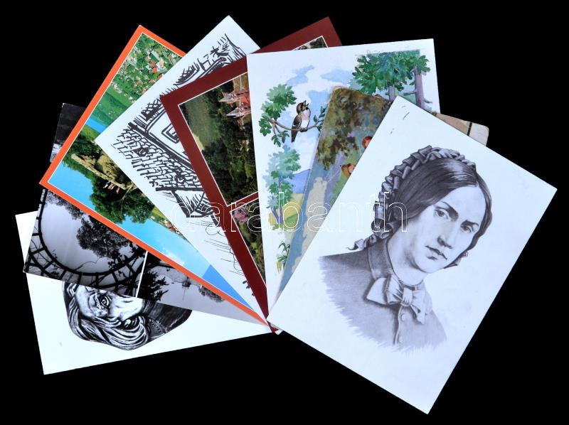 28 db főként modern és magyar városképeslap, benne néhány motívum lap, üdvözlőlap, híres ember, katona, zenész, cserkész és hölgy motívumú lap / 28 mainly modern Hungarian postcards and motive cards, greeting cards, famous people, soldier, scout, lady
