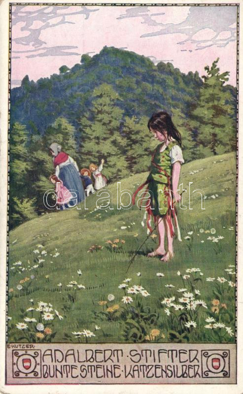 Leírás: Adalbert Stifter, Buntesteine Katzensilber 'Ostmark Bund deutscher Österreicher Stifter Karte Nr. 94' s: E. Kutzer