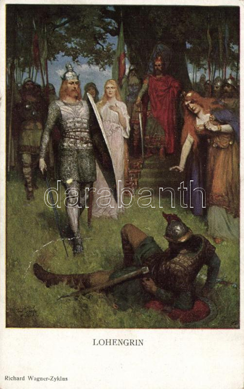 Lohengrin, Richard Wagner Zyklus, M. Munk Nr. 984 https://www.darabanth.com/hu/202-Gyorsarveres/202.0/Kepeslapok/Muvesz~600100/Lohengrin-Richard-Wagner-Zyklus-M-Munk-Nr-984~II803060