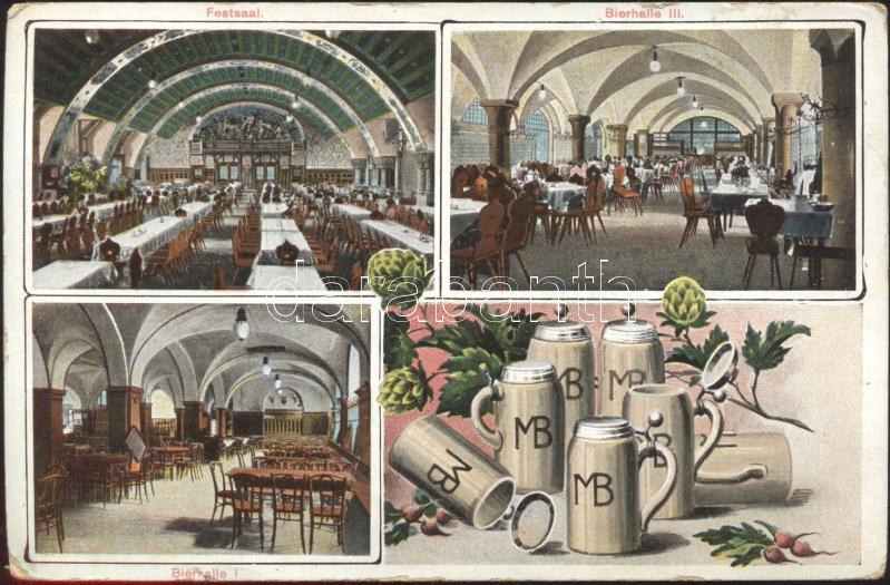 Leírás: München, Bierhallen des Mathäser Bräu (small tear)