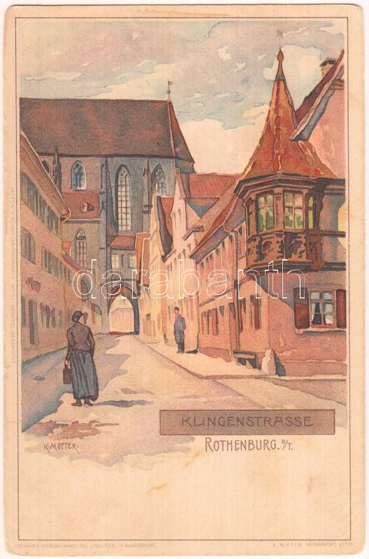 Leírás: Rothenburg ob der Tauber, Klingerstrasse, Veltens Künstlerpostkarte No. 121 litho s: K. Mutter (EK)