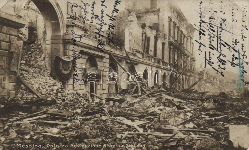 1908 Messina, Palazzo Navigazione Generale Italiana / earthquake (fa) https://www.darabanth.com/hu/202-Gyorsarveres/202.0/Kepeslapok/Olaszorszag~600120/1908-Messina-Palazzo-Navigazione-Generale-Italiana-earthquake-fa~II805424