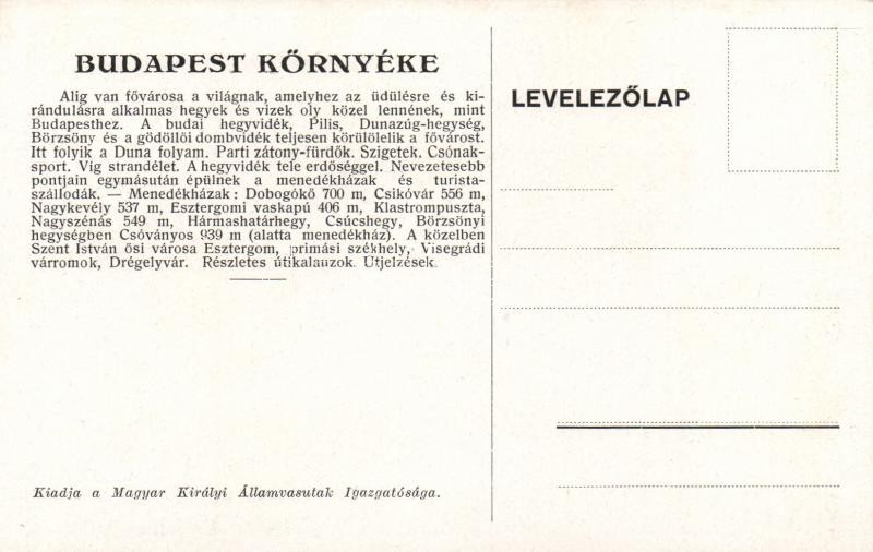 Budapest környéke, MÁV belföldi turisztikai reklám / Hungarian State R... https://www.darabanth.com/hu/202-Gyorsarveres/202.0/Kepeslapok/Reklam~600075/Budapest-kornyeke-MAV-belfoldi-turisztikai-reklam-Hungarian-State-Railways-tourism-campaign-~II799825