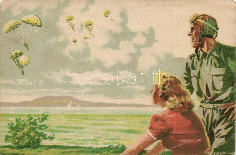 Ejtőernyősök, időjárásjelző festékkel készült képeslap, az MRSZ Repülő... https://www.darabanth.com/hu/202-Gyorsarveres/202.0/Kepeslapok/Repulo~600077/Ejtoernyosok-idojarasjelzo-festekkel-keszult-kepeslap-az-MRSZ-Repulosajto-kiadasa-~II735477