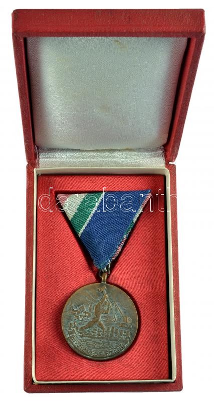 Leírás: 1954. "Árvízvédelemért Érem" patinázott Br kitüntetés, szalaggal dísztokban T:2
