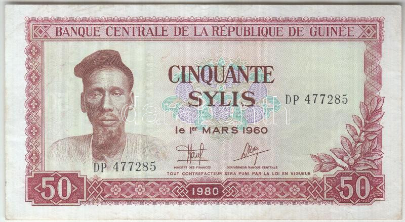 Guinea 1980. 50 Sylis C:XF (unfolded... https://www.darabanth.com/hu/202-Gyorsarveres/202.0/Numizmatika/Kulfoldi-bankjegyek~600012/Guinea-1980-50S-TII-hajtatlan-3Cbr3EGuinea-1980-50-Sylis-CXF-unfolded-3Cbr3EKrause-25~II800529