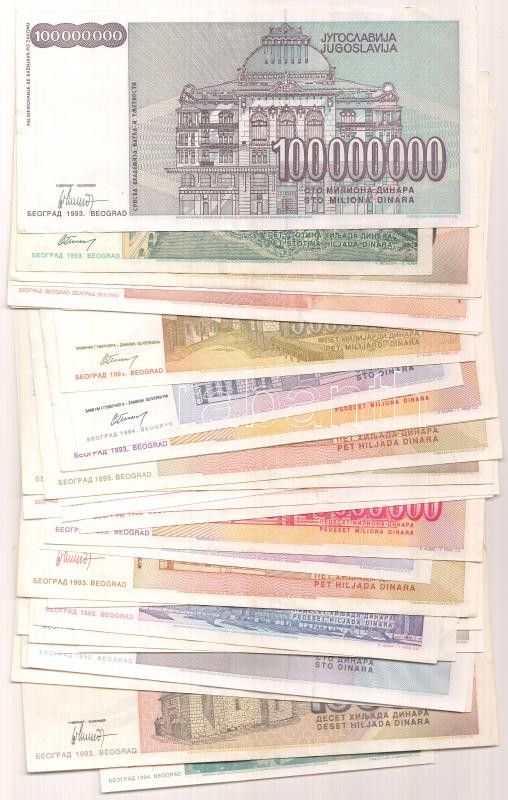 Yugoslavia 1990-1994. 37db vegyes bankjegy C:UNC-F