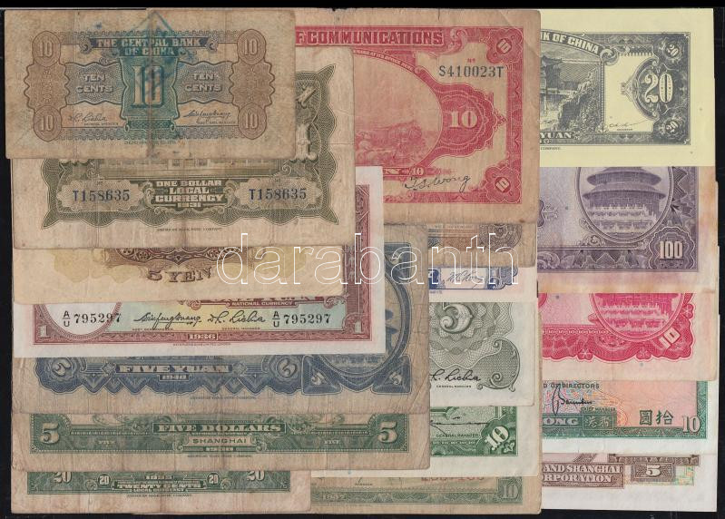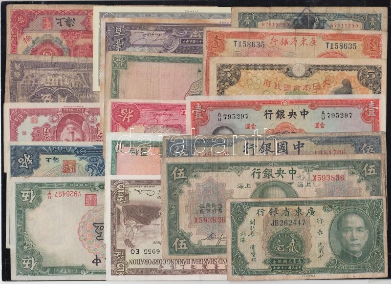 Leírás: Kína 18db különféle bankjegy T:vegyes