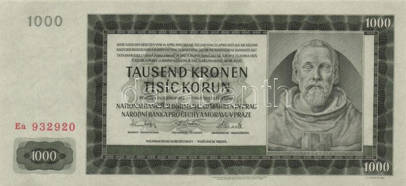 Német 3. Birodalom/Cseh-Morva Protektorátus 1942. 1000K 2. kiadás T:I