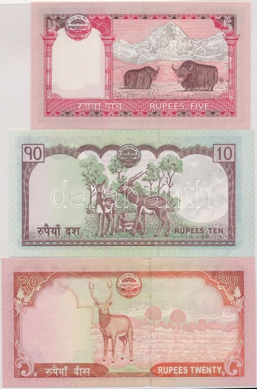 Nepál 2010- 5R + 10R + 20R "Yuba Raj Khatiwada / Csomolungma"... https://www.darabanth.com/hu/202-Gyorsarveres/202.0/Numizmatika/Kulfoldi-bankjegyek~600012/Nepal-2010-5R-plus-10R-plus-20R-Yuba-Raj-Khatiwada-Csomolungma-TI-3Cbr3ENepal-2010-5-Rupees-plus-10-Ru~II804973