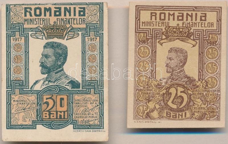 Romania 1917. 25 Bani + 50 Bani C:UNC,A... https://www.darabanth.com/hu/202-Gyorsarveres/202.0/Numizmatika/Kulfoldi-bankjegyek~600012/Romania-1917-25B-plus-50B-TI-I--3Cbr3ERomania-1917-25-Bani-plus-50-Bani-CUNC-AU~II802873