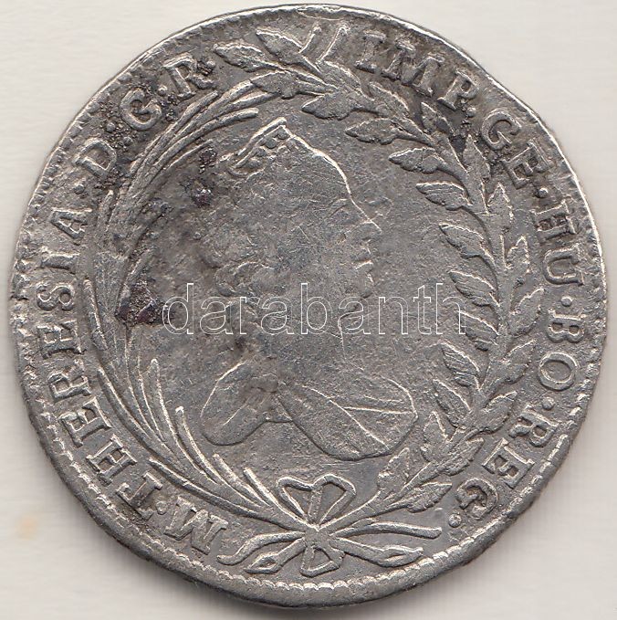 Austria 1765. 20... https://www.darabanth.com/hu/202-Gyorsarveres/202.0/Numizmatika/Kulfoldi-fem-es-ezustpenzek~600013/Ausztria-1765-20Kr-Ag-Maria-Terezia-T2--3Cbr3EAustria-1765-20-Kreuzer-Ag-Maria-Theresia-CVF~II803537