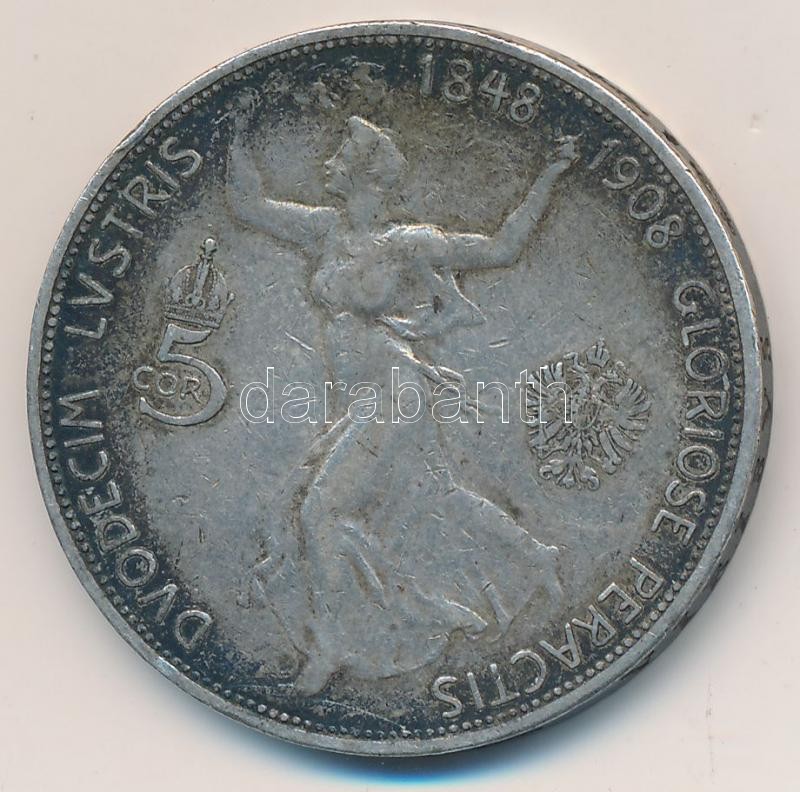 Austria 1908. 5 Coro... https://www.darabanth.com/hu/202-Gyorsarveres/202.0/Numizmatika/Kulfoldi-fem-es-ezustpenzek~600013/Ausztria-1908-5K-Ag-Jubileum-T3-ph-3Cbr3EAustria-1908-5-Corona-Ag-Jubilee-CF-edge-error-3Cbr~II789314