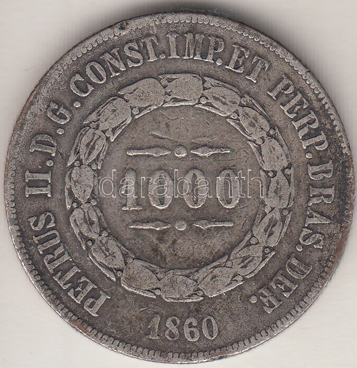 Brazil 1860. 1000 Reis Ag C:F https://www.darabanth.com/hu/202-Gyorsarveres/202.0/Numizmatika/Kulfoldi-fem-es-ezustpenzek~600013/Brazilia-1860-1000R-Ag-T3-3Cbr3EBrazil-1860-1000-Reis-Ag-CF~II801378