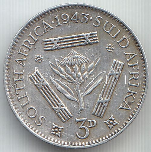South Africa 1943. 3... https://www.darabanth.com/hu/202-Gyorsarveres/202.0/Numizmatika/Kulfoldi-fem-es-ezustpenzek~600013/Del-Afrika-1943-3P-Ag-VI-Gyorgy-T2-3Cbr3ESouth-Africa-1943-3-Pence-Ag-Geroge-VI-CXF-3Cbr3EK~II800058