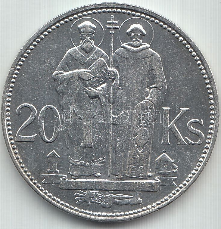 Slovakia 1941. ... https://www.darabanth.com/hu/202-Gyorsarveres/202.0/Numizmatika/Kulfoldi-fem-es-ezustpenzek~600013/Szlovakia-1941-20K-Ag-Cirill-es-Metod-T2-3Cbr3ESlovakia-1941-20-Korun-Ag-St-Kyrill-and-St-~II800570