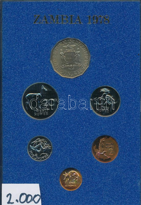 Leírás: Zambia 1978. 1N - 50N 6klf db, forgalmi szett plasztik és karton tokban T:1