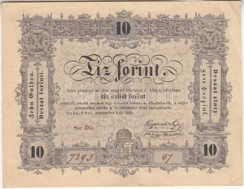1848. 10Ft "Kossuth bankó" T:II-,III