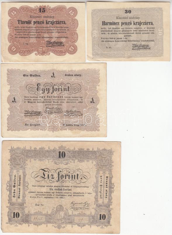1848-1849. 15Kr + 30Kr + 1Ft + 2Ft + 5Ft + 10Ft "Kossuth bankó&qu... https://www.darabanth.com/hu/202-Gyorsarveres/202.0/Numizmatika/Magyar-bankjegyek~600008/1848-1849-15Kr-plus-30Kr-plus-1Ft-plus-2Ft-plus-5Ft-plus-10Ft-Kossuth-banko-sorozat-TIII~II801094