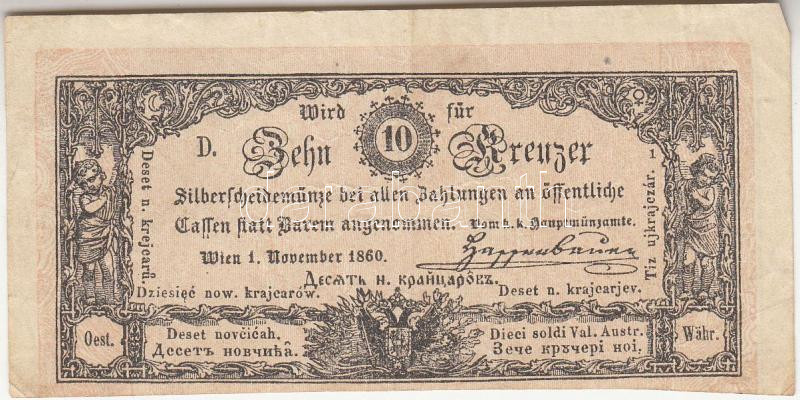 1860. 10Kr "K. K. Hauptmünzamt für Silberscheidemünze" T:III https://www.darabanth.com/hu/202-Gyorsarveres/202.0/Numizmatika/Magyar-bankjegyek~600008/1860-10Kr-K-K-Hauptmunzamt-fur-Silberscheidemunze-TIII~II801128