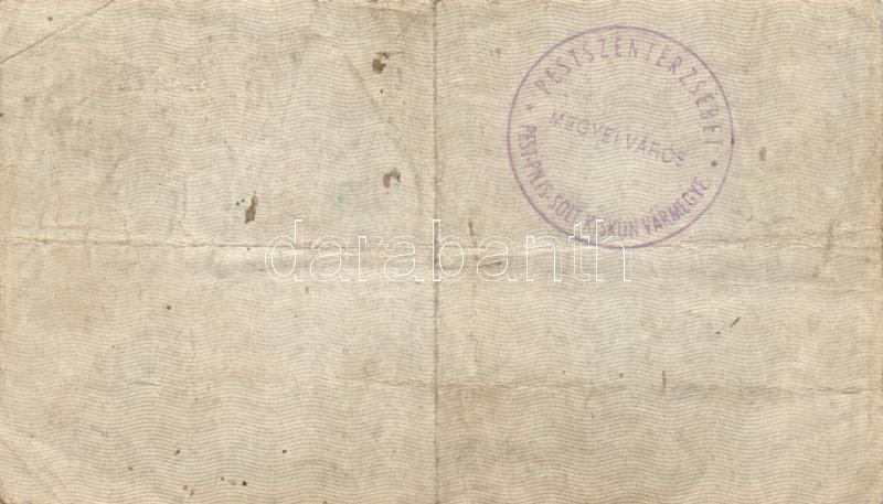 Leírás: 1918. 25K "3141 / 3mm" hullámos hátlap "Pestszenterzsébet Pest-Pilis-Solt-Kiskun Vármegye - Megyei Város" T:III-