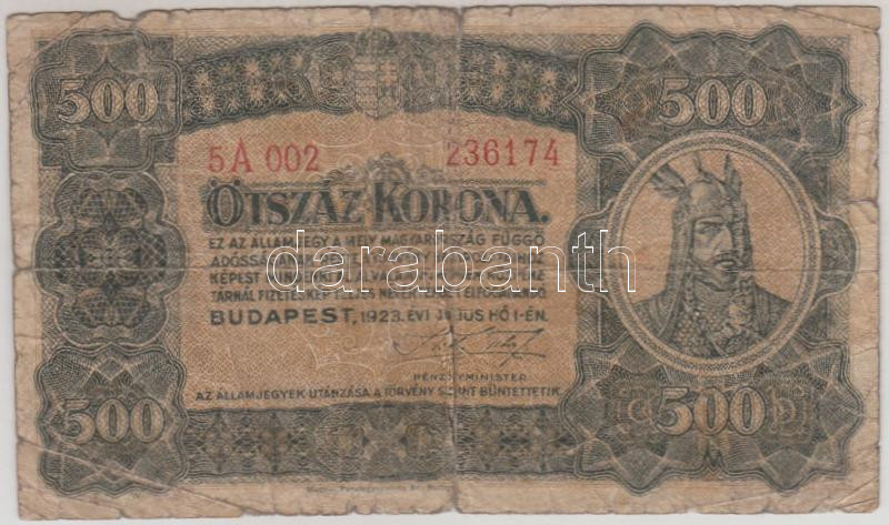 Leírás: 1923. 500K "Magyar Pénzjegynyomda Rt. Budapest" T:III-