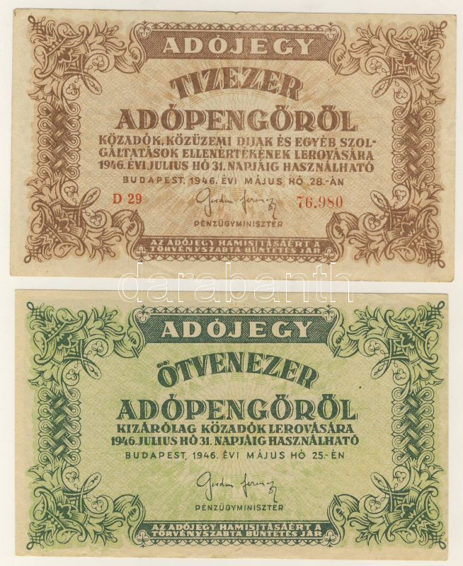 Leírás: 1946. 100.000AP hátoldali évszámban erős lemezhiba + 50.000AP hátoldalon vékonyabb betűkkel, elcsúszott nyomattal T:II-,III