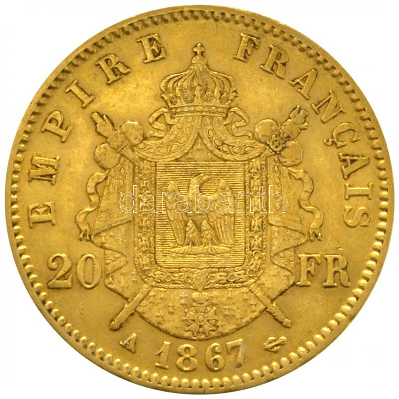 Franciaország / II. Császárság 1867A 20Fr Au "III. Napóleon" Párizs (6.42g/0.900) T:2