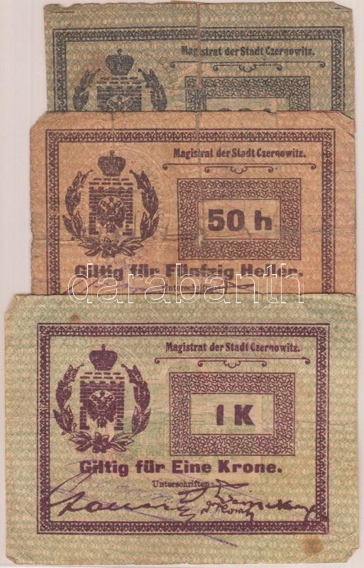 Leírás: Ausztria / Czernowitz 1914. 20h + 50h + 1K városi szükségpénzek T:III,IV