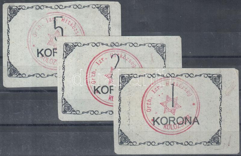 Leírás: Kolozsvár ~1920. 1K + 2K + 5K "Orthodox Izraelita Hitközség" pecsételéssel ellátott szükségpénz T:I-