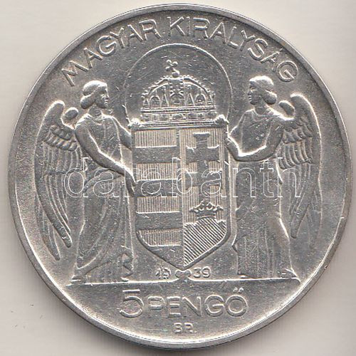 Leírás: 1939. 5P Ag "Horthy-balra" T:2-