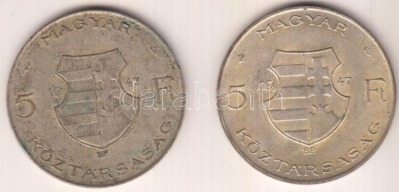 Leírás: 1947. 5Ft Ag "Kossuth" (2x) T:2-,3