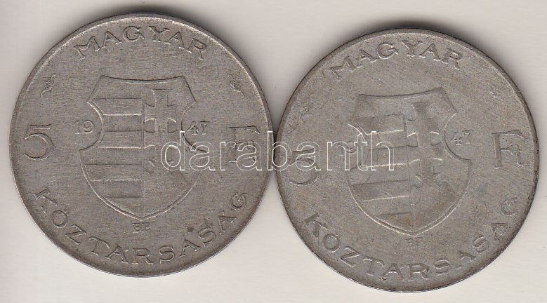 1947. 5Ft Ag "Kossuth" (2x) T:3