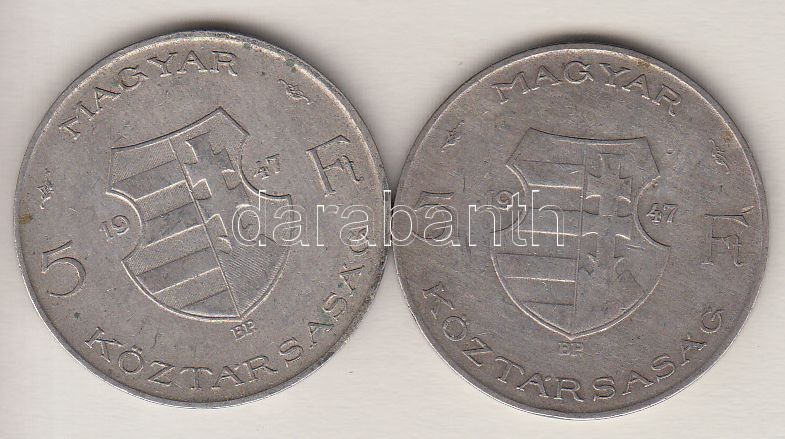 Leírás: 1947. 5Ft Ag "Kossuth" (2x) T:3