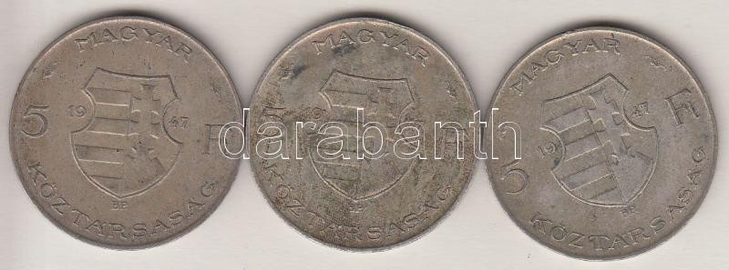 Leírás: 1947. 5Ft Ag "Kossuth" (3x) T:2-,3