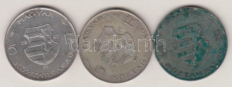 Leírás: 1947. 5Ft Ag "Kossuth" (3x) T:3