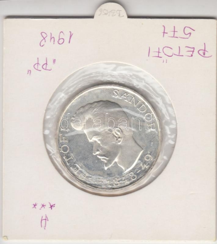 1948. 5Ft Ag "Petőfi" utánveret T:PP https://www.darabanth.com/hu/202-Gyorsarveres/202.0/Numizmatika/Magyar-fem-es-ezustpenzek~600009/1948-5Ft-Ag-Petofi-utanveret-TPP~II768527
