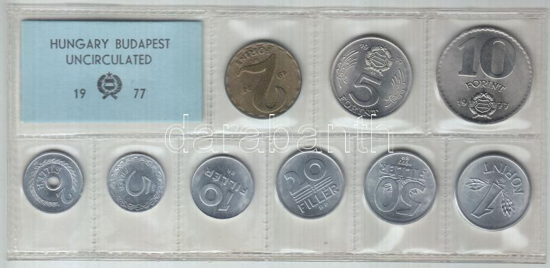 1977. 2f-10Ft 9db klf érmés forgalmi sor fóliatokban T:1 https://www.darabanth.com/hu/202-Gyorsarveres/202.0/Numizmatika/Magyar-fem-es-ezustpenzek~600009/1977-2f-10Ft-9db-klf-ermes-forgalmi-sor-foliatokban-T1~II800049