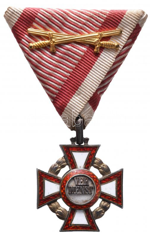 1916-1918. "A Katonai Érdemkereszt III. Osztálya hadidíszítménnyel és kardokkal" kitüntetés hadiszalagon T:2,2-
