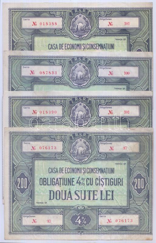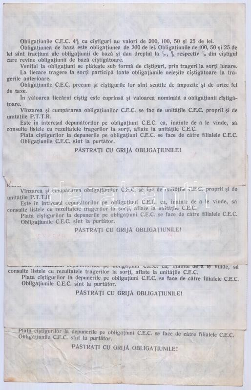Románia DN "Országos Takarékpénztár (C.E.C.) 4%-os kötvénye 200L-ről (4x) T:II,III